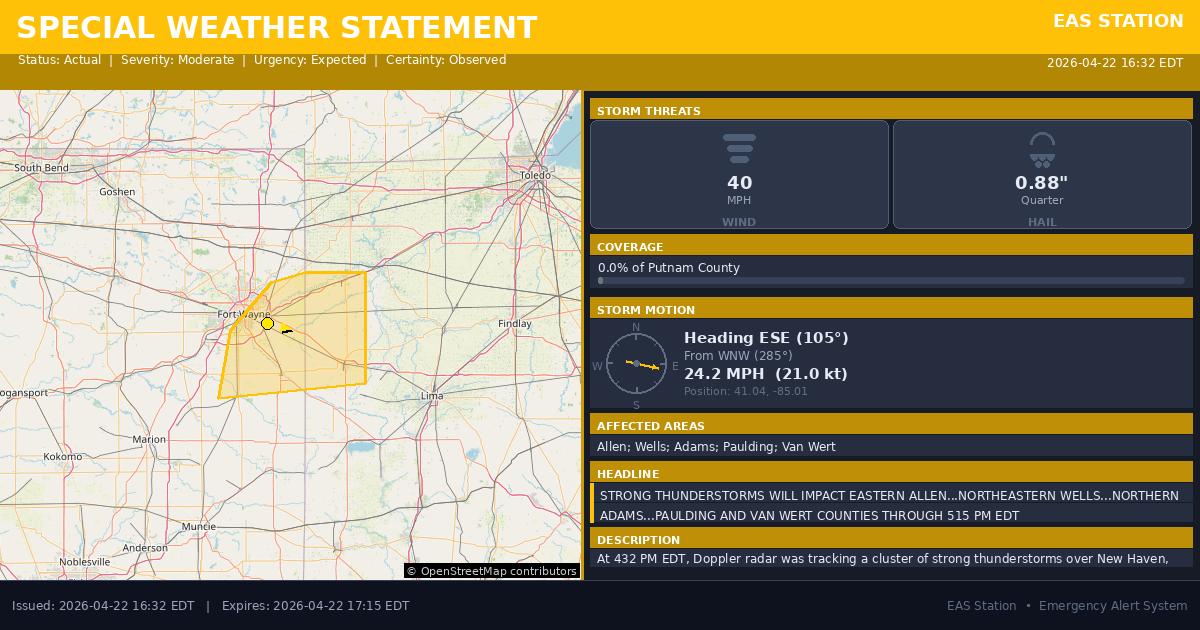 Special Weather Statement issued April 22 at 4:32PM EDT by NWS Northern Indiana