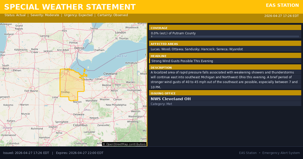 This alert covers 0.0% of Putnam County , affecting some emergency service boundaries.