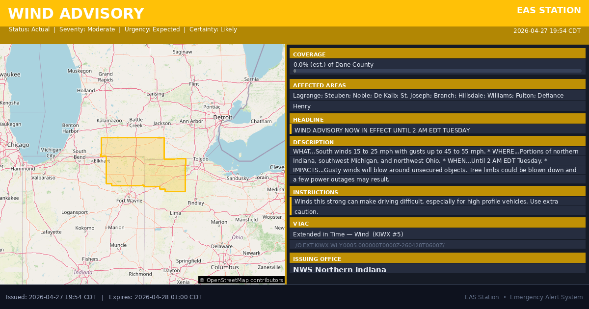 Wind Advisory issued April 27 at 8:54PM EDT until April 28 at 2:00AM EDT by NWS Northern Indiana